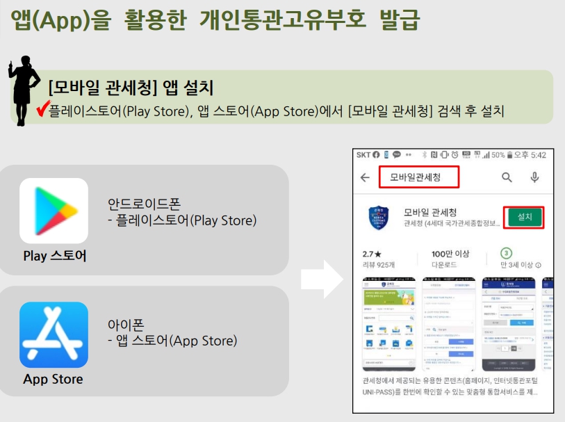 발급 완료 : 모든 정보를 입력한 후, 발급 버튼을 클릭하면 개인통관부호가 발급됩니다.