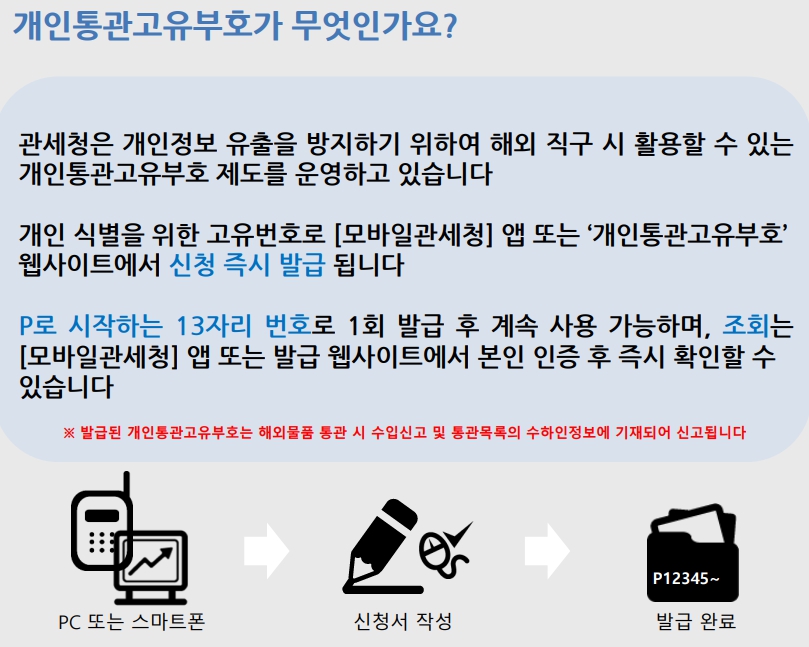 이 번호는 세관에서 개인의 수입 물품을 관리하고 통관 절차를 간소화하기 위해 사용됩니다.