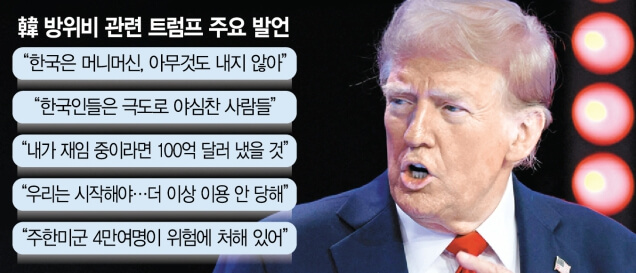 한국 방위비 관련 트럼프 주요 발언