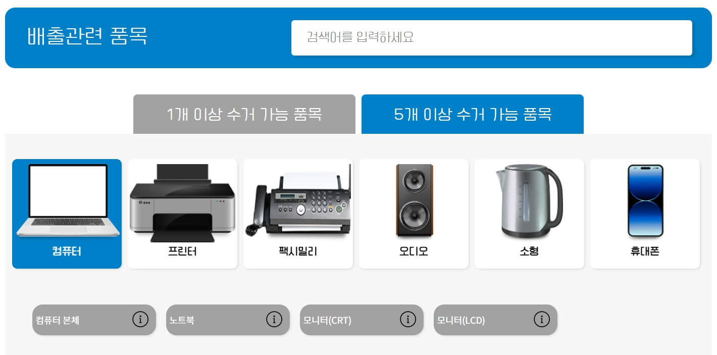 • 다양한 품목: 대형, 중형, 소형 가전부터 부속품까지 폭넓은 수거.