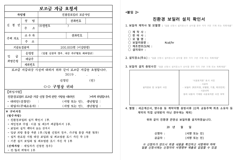 보일러 교체 전 사전 신청 또는 교체 후 사후 신청 모두 가능