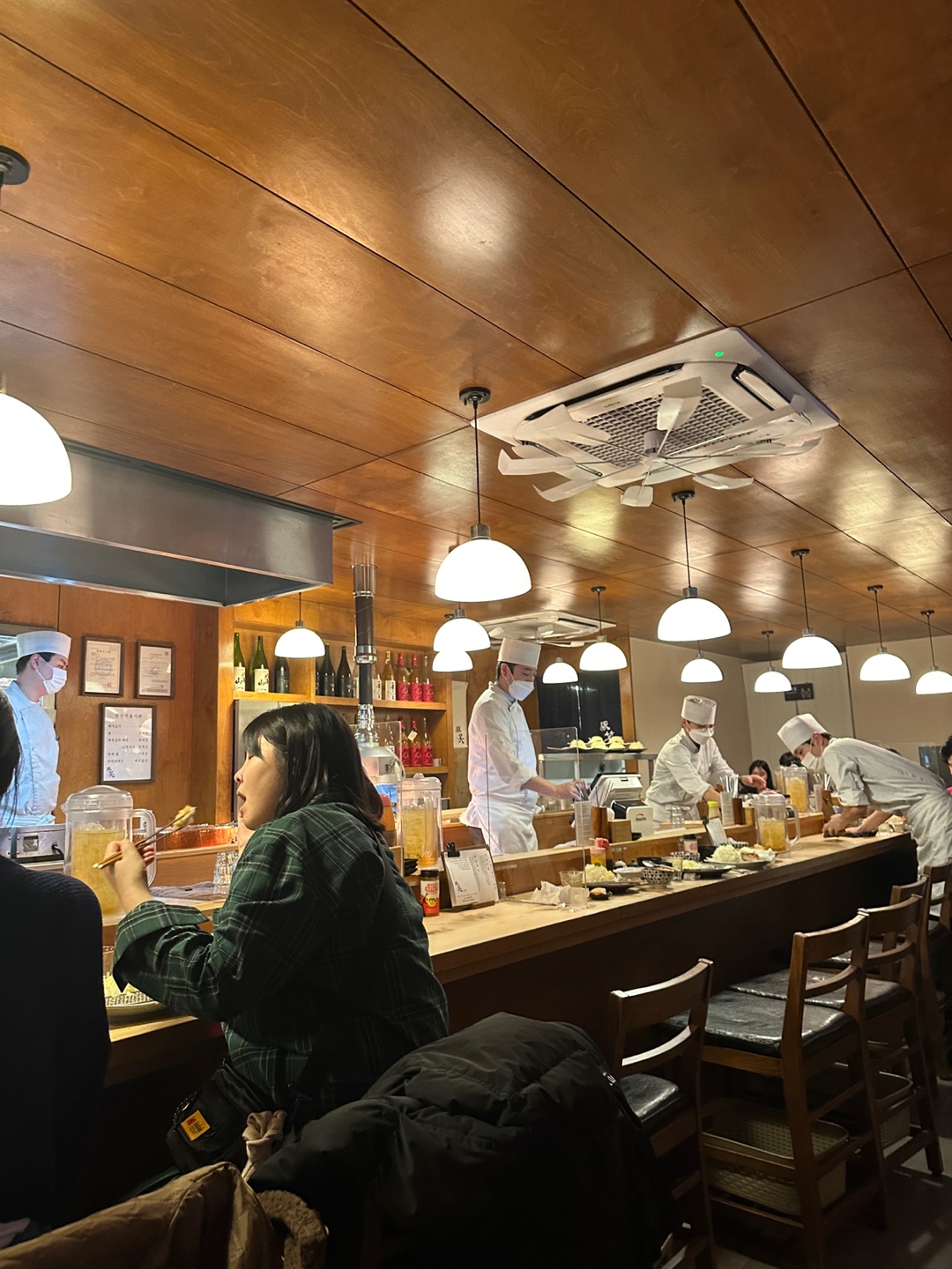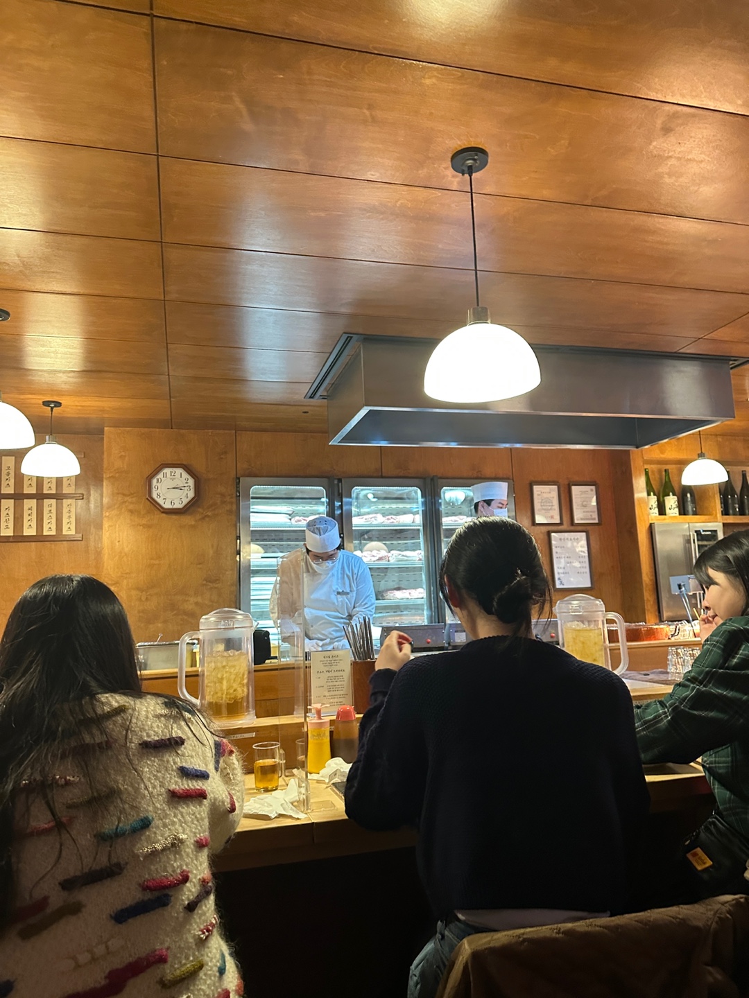 매장 안은 좁지만 사람들이 많았고, 오픈 주방을 중심으로 다찌석이 있었으며,