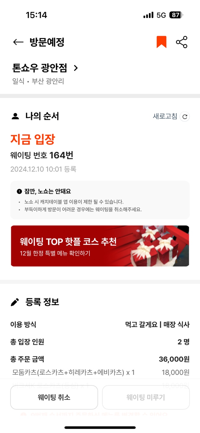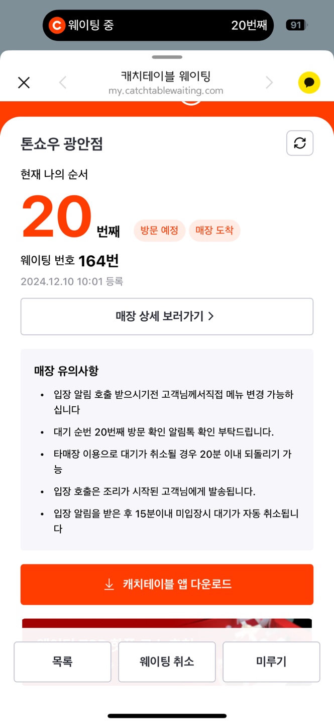부산 광안리 톤쇼우 웨이팅 후기 웨이팅 꿀팁
