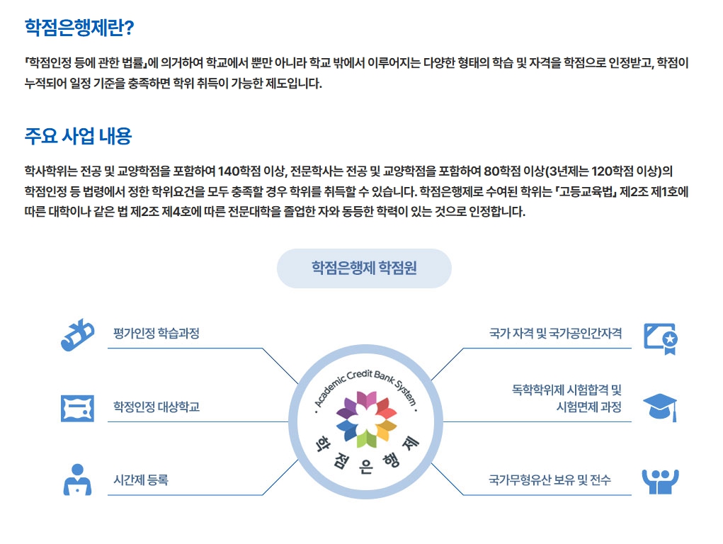 • 학점은행제를 통해 전공 학점을 인정받으면 면허시험 응시 조건을 충족시킬 수 있습니다.