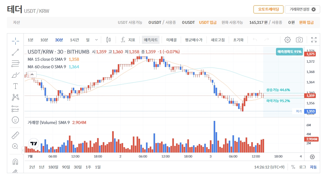 가장 쉬운 방법은 변동성이 낮은 스테이블 코인(USDT)을 매수하고 바로 매도하는 겁니다.