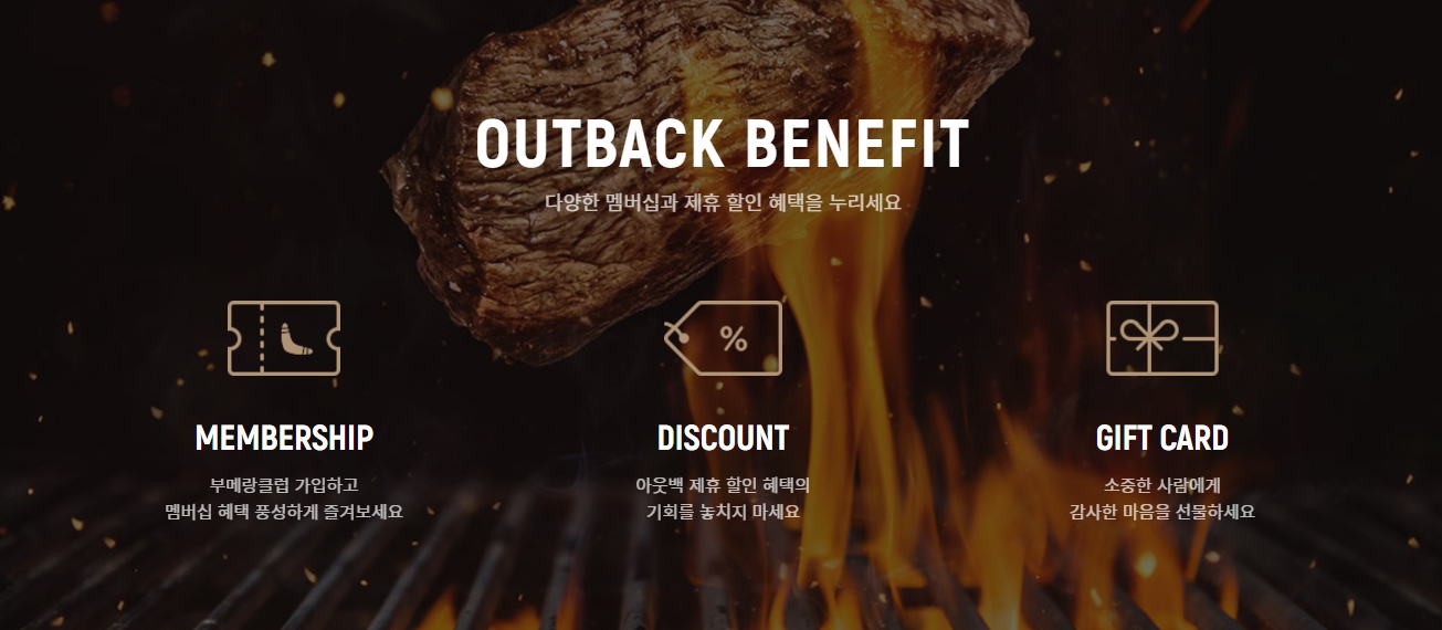 • 가입 방법: 아웃백 공식 앱 또는 웹사이트에서 간단히 가입.