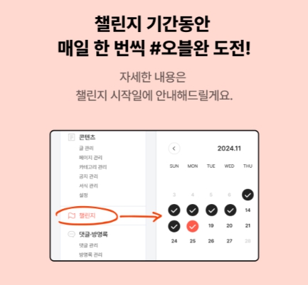 오블완 챌린지 2024년 11월 7일부터 11월 27일까지 진행되는