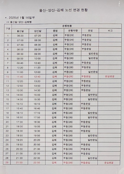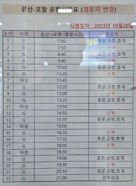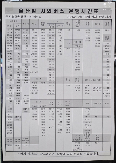 울산 시외버스 터미널 노선 및 시간표