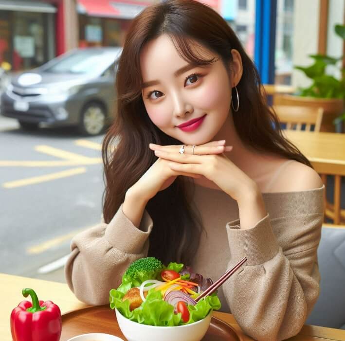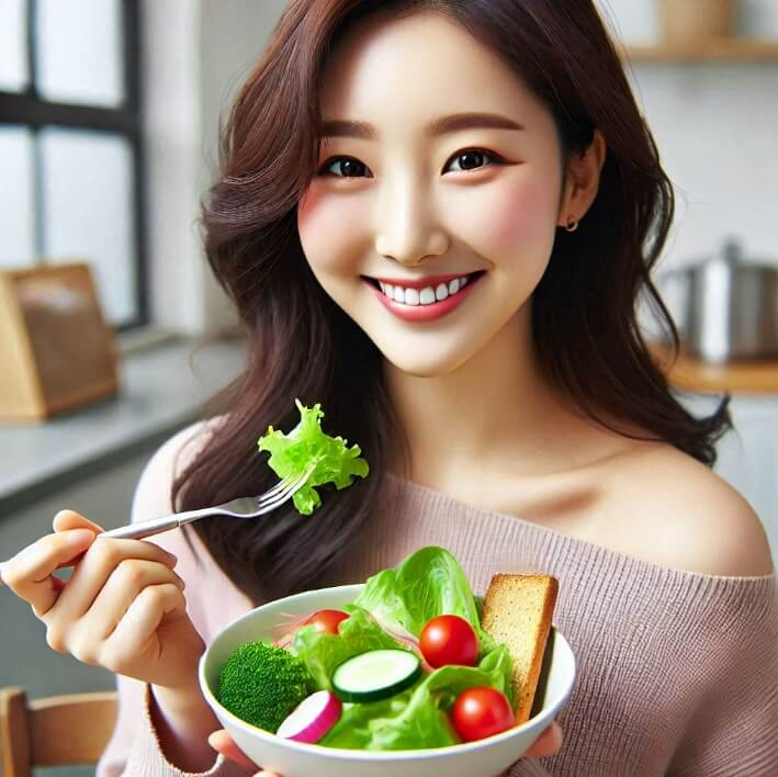 잡곡밥(렌틸콩, 귀리, 현미, 백미 4:2:2:2 비율)과 채소 중심의 식사를 유지하며,