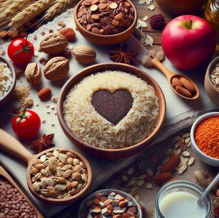 혈당지수가 낮은 통곡물(현미, 귀리, 렌틸콩 등)을 섭취합니다
