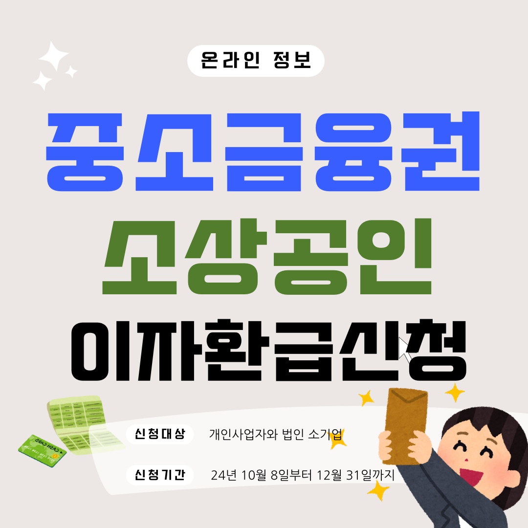 중소금융권 소상공인 이자 환급의 4분기 신청 기간은 10월 8일부터 12월 31일까지 입니다.