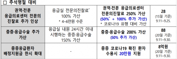 정부는 추석 연휴를 '비상응급 대응주간'으로 지정하여 전국적으로