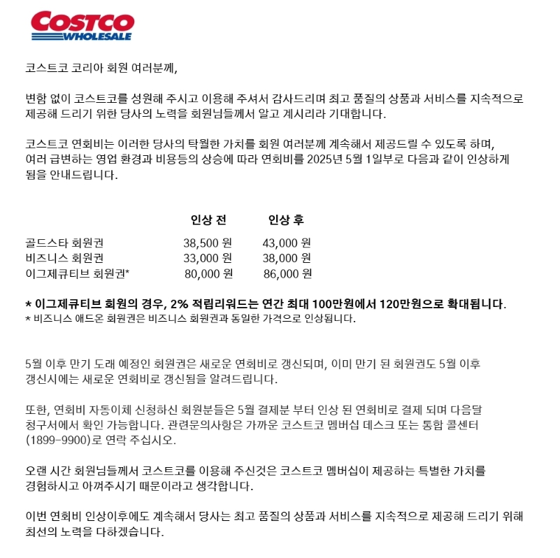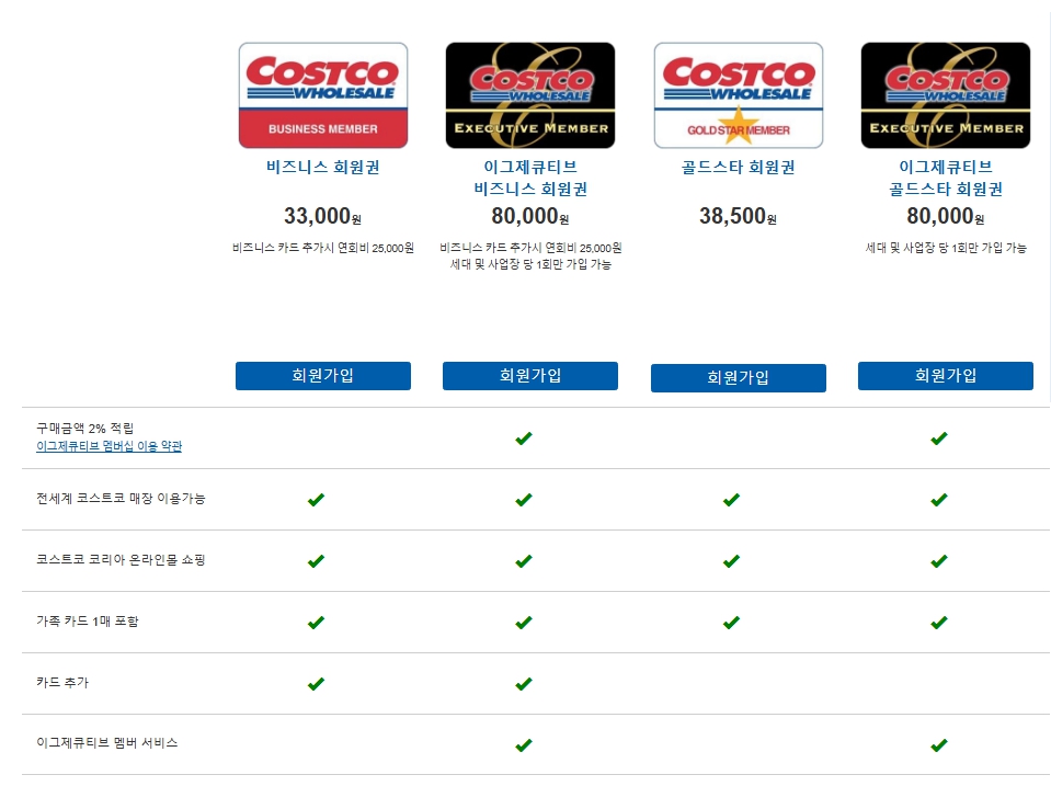 코스트코는 비즈니스 회원, 골드 스타 회원, 익스클루시브 회원 등