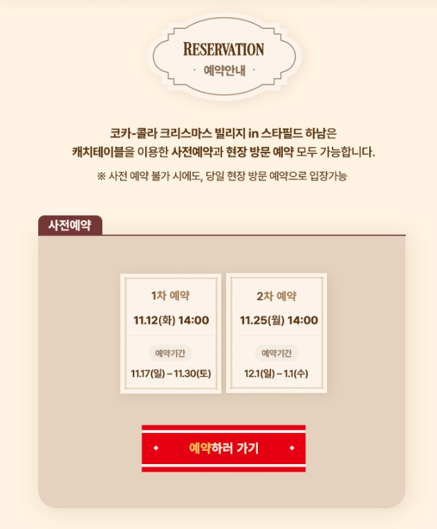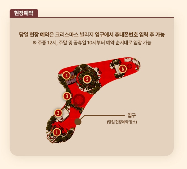 현장예약 : 크리스마스 빌리지 입구에서 휴대폰 번호 입력 후 가능
