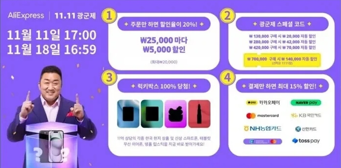 알리익스프레스 광군제는 중국의 '솔로의 날'에서 시작된 연중 최대 규모의 글로벌 쇼핑 축제입니다.