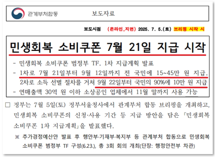 • 1차 (일반국민 기준 15만 원)