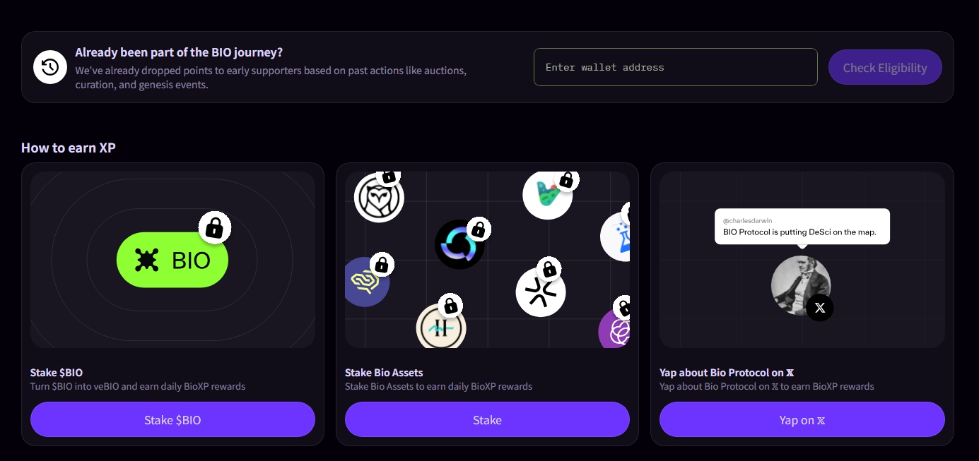 BioXP 포인트 스테이킹/거래로 획득 향후 세일 할당권 제공